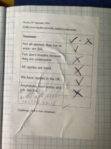 We have learned lots about plants and animals this year so far. We grew plants in the light and dark to see what happened (the one in the dark did not grow well). Plants need water AND light to grow strong and healthy.