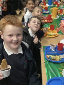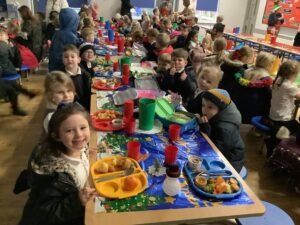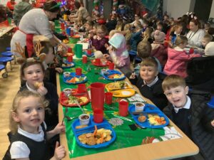 We had an amazing day today. Mrs Pennock brought her HUGE collection of Christmas inflatables for the whole school to enjoy. We loved seeing them all. Then, we had out Christmas dinner – it was yummy. Thank you to Mrs Pennock and all the kitchen staff who made it a special day.