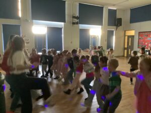 All Year 1 and 2 have had a great time at our Christmas party. It was so good the photos are blurry. The highlight was the teachers v kids dance-off – we think the teachers were better!