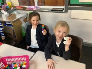 We also made some 3D shapes using 4 or 5 cubes. You can make lots of shapes by changing their position!