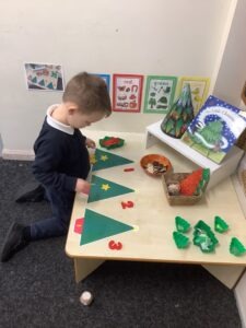 In our Maths area we have been putting the decorations on the trees. To do this we used lots of mathematical counting skills.