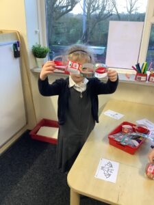 Try using the counting skills we have been learning in nursery by counting a small number of objects e.g. baubles from the tree, bows for presents, candy canes or crackers.
