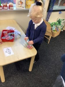 Christmas arrived in Nursery this week. We have been busy getting creative making Christmas cards and decorations. We have also linked our learning in the other areas of provision to the theme of Christmas.