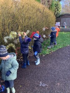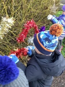 Outside the children loved decorating our winter trees with baubles and tinsel.