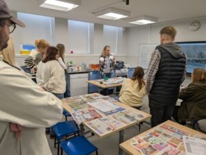 We thought about what a good newspaper looks like. The children took on the role of a journalist adding catchy headlines and informative sub-headings.