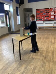 Yesterday, the children enjoyed voting in the hall using the ballot box.