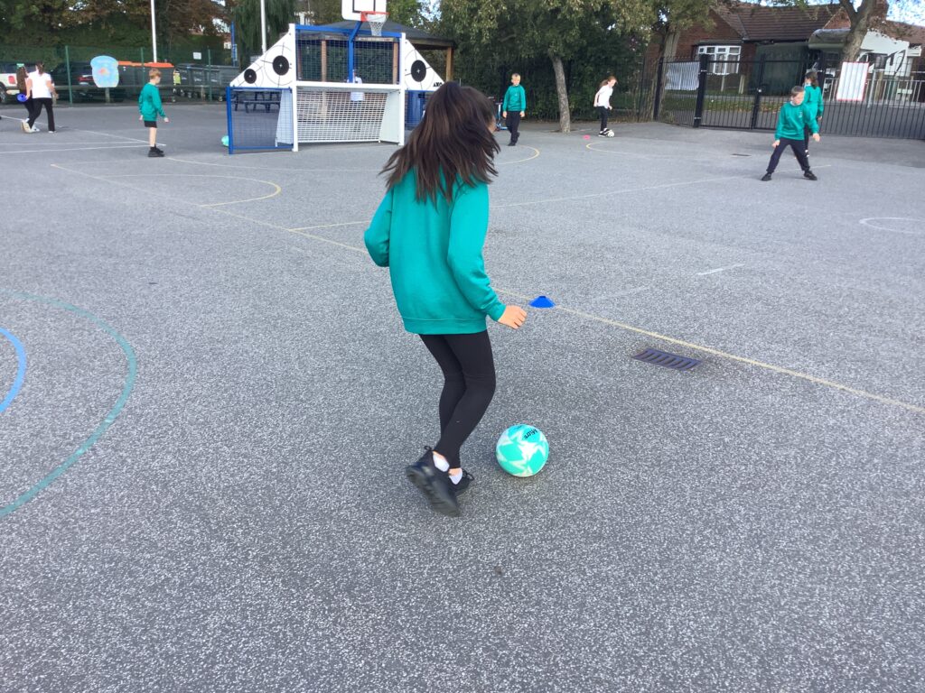 We have been developing our football skills so far this half term. We’ve been using our existing knowledge of how to pass a football using the inside, outside toes and laces of out feet/ trainers. The children have worked on improving the accuracy of their passes, over longer distances, with a partner. This week, we introduced the idea of defending. The children worked in small groups and passed the ball between them with a defender trying to intercept the ball. This also meant they had to think about their spacing, accuracy and communication skills.