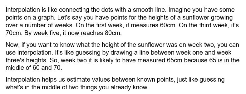 The text we’ve been reading this week links to topic and is all about interpolation.