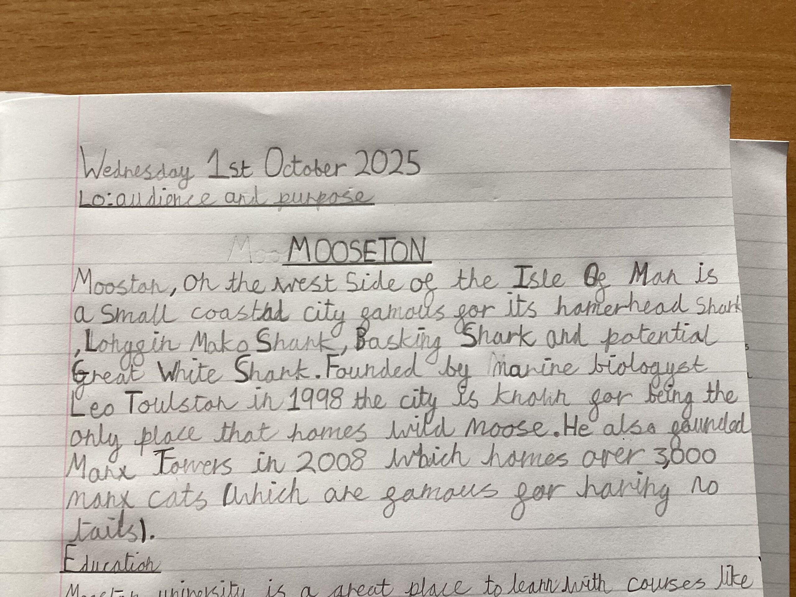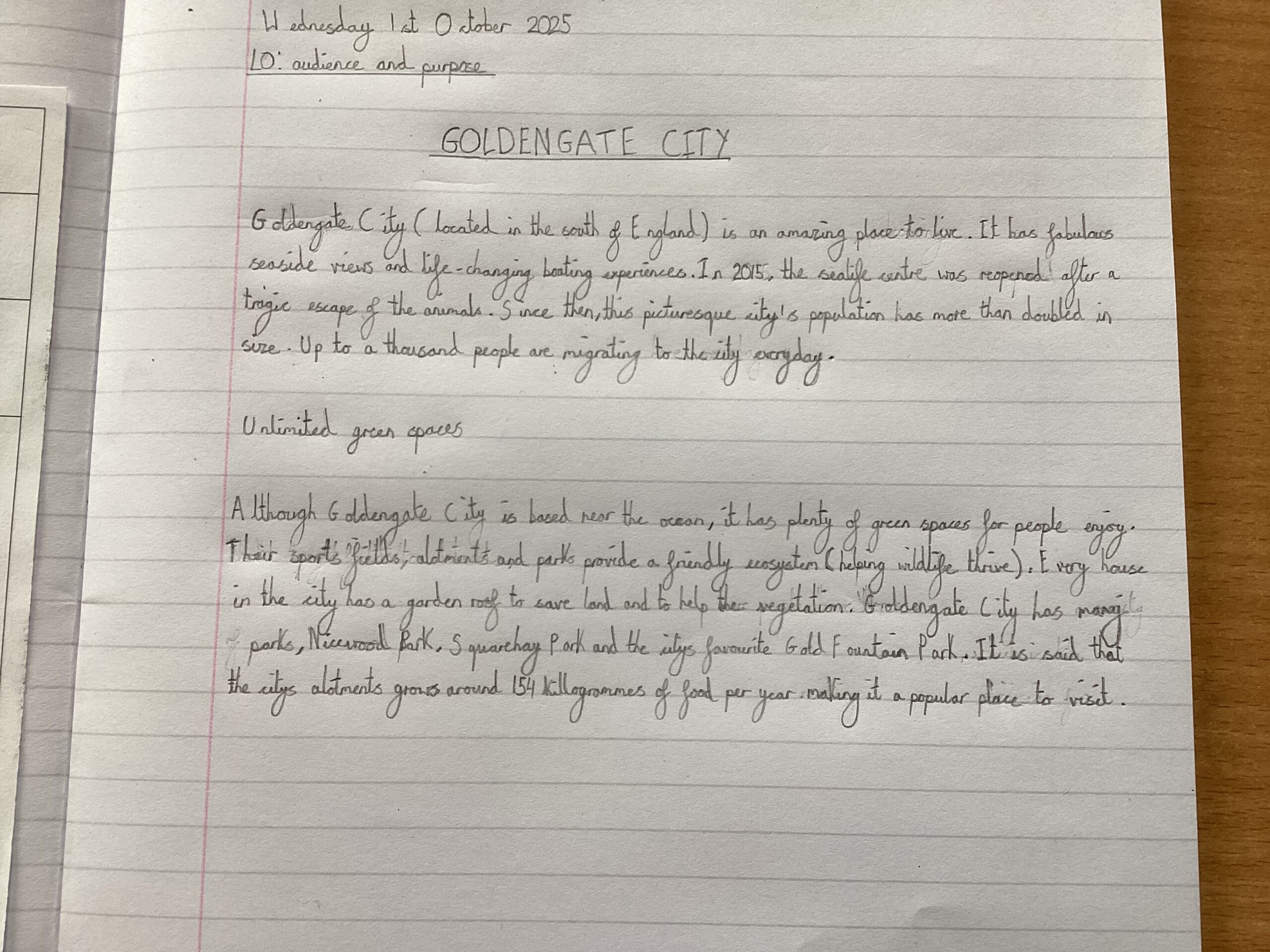 Year 5/6 have been using our geography knowledge to write a report about a fictitious city. They have included knowledge about the importance of urban green spaces and city expansion.