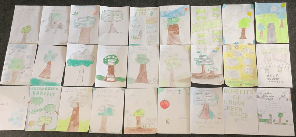 This week, we’ve been thinking about how Leeds has developed and expanded over time. We considered the importance of green spaces in cities and how these are decreasing due to city expansion. The children were able to identify the benefits of green spaces, such as carbon stores, reducing pollution and lowering global temperatures. They also looked at the impact green spaces have on humans such as improved physical health and improved mental health. The children created posters to show all the benefits.