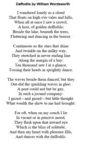 In the words of Wordsworth himself: “And then my heart with pleasure fills, and dances with the daffodils.”