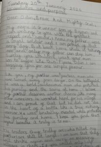 This week in writing, the children have been stepping straight into the world of our class novel Viking Boy, writing powerful letters from the perspective of its brave protagonist, Gunnar.